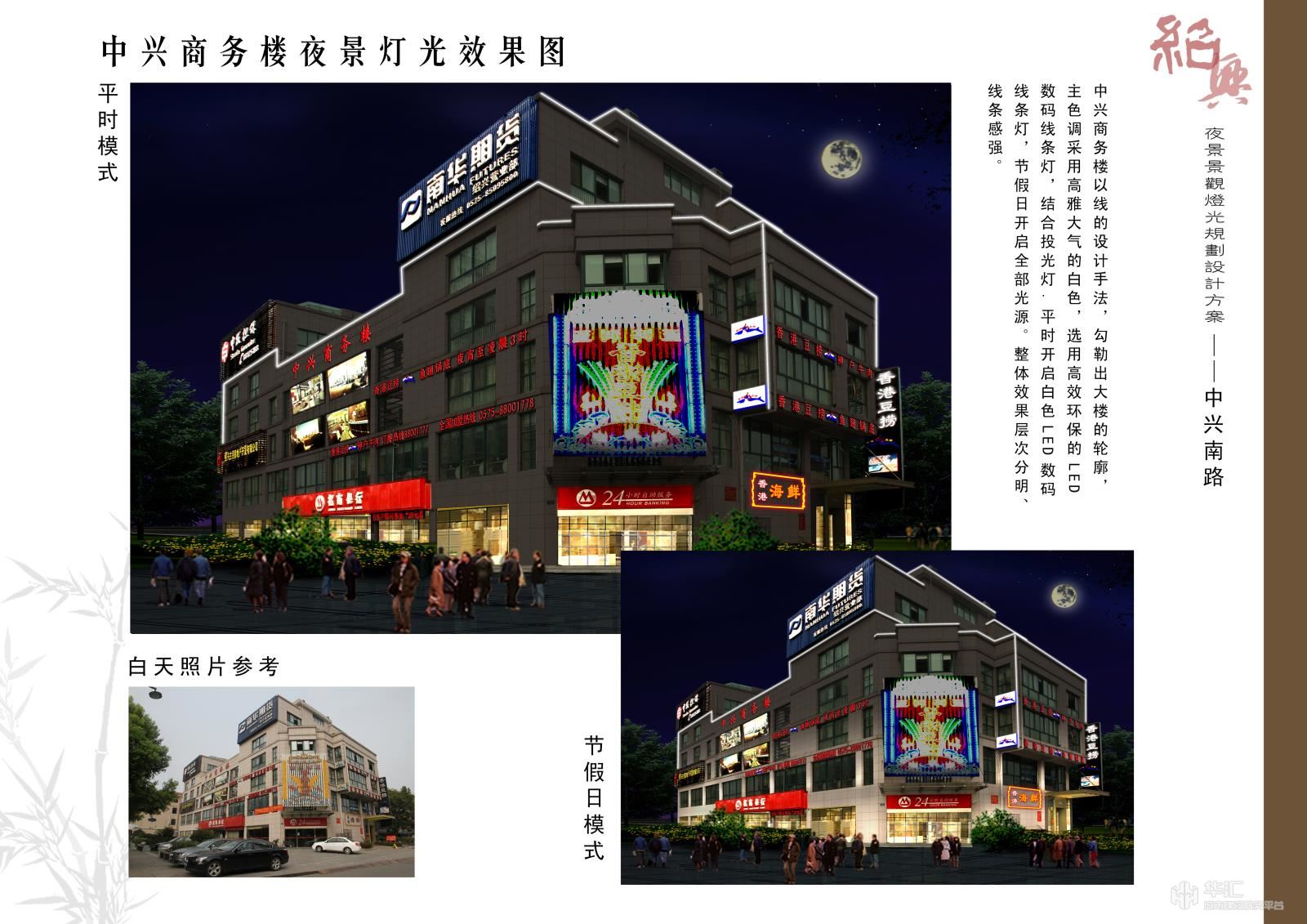 本工程為市區(qū)解放路,中興路,人民路,勝利路的40座樓宇亮化提升項目設(shè)計,設(shè)計采用簡潔,優(yōu)雅為原則,統(tǒng)一了這四個街區(qū)的夜景燈光風(fēng)格,改變了原有夜景雜亂無章的現(xiàn)狀。再結(jié)合街區(qū)的風(fēng)格以及建筑物的形狀特點,把全部燈光分為平時和節(jié)日兩種模式,通過不同時間段的控制滿足平時和假日的效果需求,也節(jié)約了大量電能。