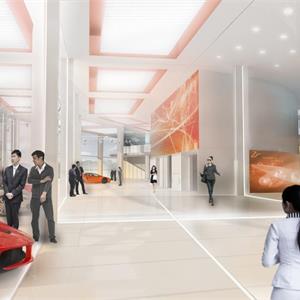迎賓中心緊鄰比賽大看臺(tái),并且和凱世精品酒店通過(guò)以通透的玻璃連廊在四層連接,位于整個(gè)賽車場(chǎng)的核心區(qū)域,是整個(gè)賽車場(chǎng)的動(dòng)力中心和后勤保障大樓。此大樓承載著賽事期間的高端接待運(yùn)營(yíng),也為凱世精品酒店的平時(shí)運(yùn)營(yíng)提供餐飲、休閑等服務(wù)。