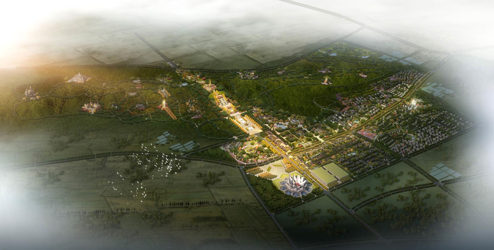 在基地尺度上,保護并凸顯山環(huán)水繞的優(yōu)美空間形態(tài),賦予其藏傳佛教雙魚圖的吉祥文化內涵;在項目尺度上,借鑒傳統(tǒng)藏族村寨的建筑和街巷等空間肌理,及藏族建筑元素;同時結合傳統(tǒng)產業(yè)引入、民俗非遺活化等措施,在多個尺度、多個側面延續(xù)區(qū)域文脈,構建具有藏地傳統(tǒng)風情的空間格局。