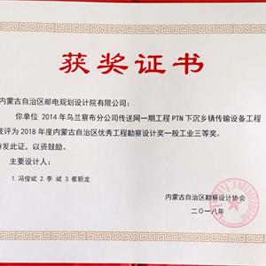 該項目于2018年12月榮獲內(nèi)蒙古勘察設(shè)計協(xié)會“2018年度全區(qū)優(yōu)秀工程勘察設(shè)計獎工業(yè)項目類三等獎”。