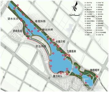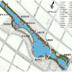 為保障區(qū)域開(kāi)發(fā)建設(shè),在原有渠道的基礎(chǔ)上,對(duì)雁月湖水系進(jìn)行綜合治理,提高防洪排澇標(biāo)準(zhǔn)、修復(fù)生態(tài)環(huán)境、消除黑臭水體、提升濱水景觀、增加公共活動(dòng)空間,實(shí)現(xiàn)顯水、融綠、添景,形成綜合型濱水風(fēng)光帶。