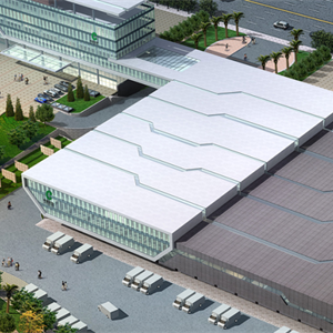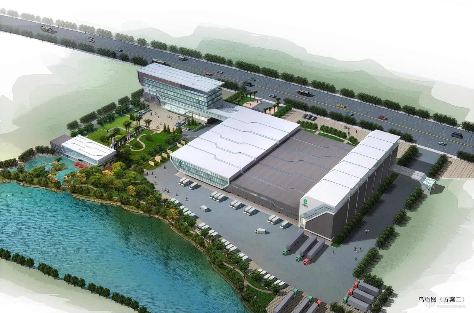 浙江省煙草公司紹興市公司卷煙物流配送中心項目基地位于紹興袍江新區(qū)G17號地塊,基地北臨329國道,東臨越王路大禹加油站,西面為待開發(fā)的建設(shè)用地,南面是河流?;乜傆玫孛娣e為40222平方米。 一、項目概況: 本配送中心規(guī)模按照年銷量24萬箱的一級卷煙物流配送中心標(biāo)準(zhǔn)建設(shè),卷煙庫存容量為75000件(15000大箱),總建筑面積17574.25平方米(不包括架空車庫)。用地性質(zhì)為商業(yè)物流,主要由聯(lián)合工房,輔助樓(架空車庫)組成。 三.總體規(guī)劃 本方案總體布局分為兩大區(qū)塊:輔助樓區(qū)和聯(lián)合工房區(qū)。 輔助樓區(qū)布置在地塊西側(cè),由輔助樓和架空車庫組成。輔助區(qū)的主要出入口由329國道地塊西部進(jìn)入,聯(lián)合工房區(qū)位于地塊的東側(cè),該區(qū)的主要出入口由329國道地塊東側(cè)進(jìn)入。 兩大區(qū)塊并置,相互連系,又互不干擾。 四、交通組織 規(guī)劃以“盡量減少車流對行人影響”作為交通組織的原則?;胤謨刹糠郑o助樓區(qū)和聯(lián)合工屠區(qū)各自形成環(huán)路,互不干擾。