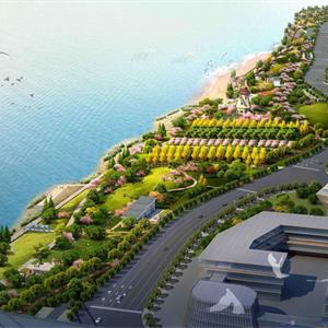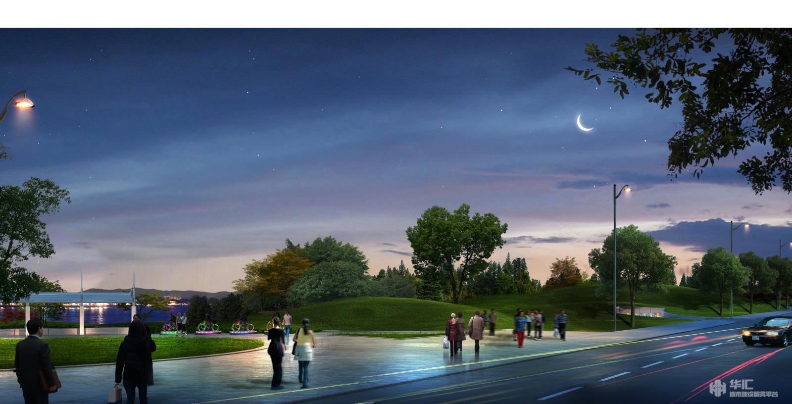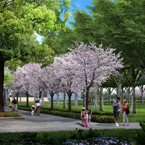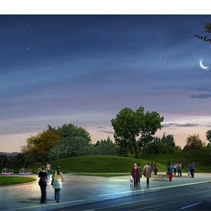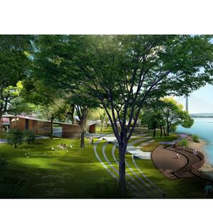 在鹿山大橋至江城路區(qū)域,以“山”為主要景觀設(shè)計元素?,F(xiàn)場為平整農(nóng)田,設(shè)計結(jié)合未來文化行政中心功能用地,以“雄奇“為設(shè)計出發(fā)點,在中軸線兩側(cè)局部堆坡,營造微地形,模擬群山意向,使江濱西大道沿江一側(cè)展現(xiàn)層層疊疊的山巒意象。在軸線上以層級遞進(jìn)的方式,通過叢林、廣場、草坡等景觀元素逐步向江邊展開,穿插布置各類小建筑、亭臺、廊架等,層級起伏,與兩岸群山遙相呼應(yīng),凸顯富春“山居”景觀風(fēng)貌。