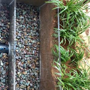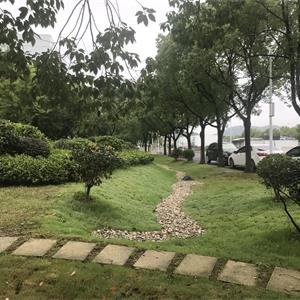 現(xiàn)狀綠地的地勢(shì)基本高于現(xiàn)狀道路,合理控制豎向標(biāo)高是本項(xiàng)目的額建設(shè)關(guān)鍵,部分建設(shè)完善的綠化不宜大面積開挖,故設(shè)置卵石槽、植草溝等靈便性大的設(shè)施實(shí)現(xiàn)綠地與道路的豎向銜接,同時(shí)也體現(xiàn)了工程細(xì)膩之處。