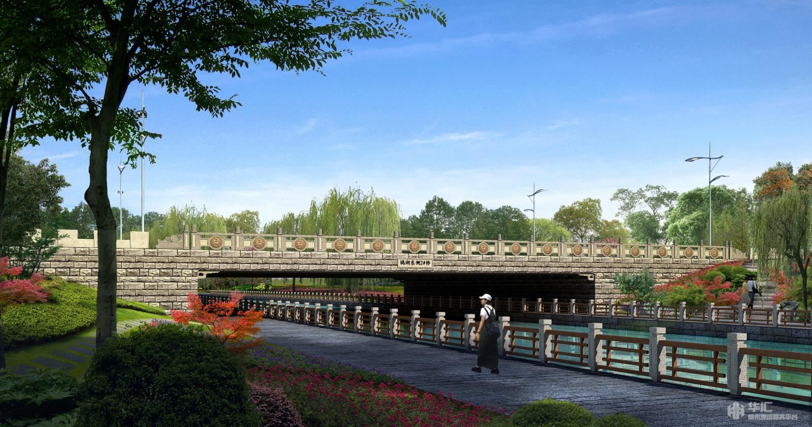 鵑湖東側(cè)道路南起城南大道,依次與緯四路(東側(cè)道路樁號K0+939.9)、緯三路(東側(cè)道路樁號K1+389.32)、緯二路(東側(cè)道路樁號K1+683.46)交叉,終點位于規(guī)劃海州路東延段樁號K1+369.94位置,道路全長1983.46m(城市次干路,設(shè)計速度30Km/h,施工范圍為K0+016.52至K1+966.93)。全線規(guī)劃紅線寬度統(tǒng)一,均為30米,K0+399處跨40m規(guī)劃河道設(shè)置3x20=60m橋梁一座, K0+784處跨約14m規(guī)劃河道設(shè)置20m橋梁一座。道路全線占地面積為94.98畝。