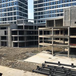 原項目分南、北獨立兩個區(qū)塊,由6幢13~18層塔樓及其4~5層裙房組成的市場,改造前,項目主體結構已結頂,建筑墻體已砌筑完畢,設備管線基本安裝到位。現需將裙房及地下區(qū)域進行改造,總改造面積約142000m2,其中地上81800m2,地下60200m2,改造后需滿足商業(yè)綜合體的建筑造型和各項功能要求。本項目重點改造的內容包括:業(yè)態(tài)調整,如增設大型超市賣場、真冰場、影院等;設備用房及管道洞口調整,如增設配電房、泵房、空調機房等;建筑動線調整,如增加室內步行街后原結構樓面大面積開洞;樓面行車路線調整,如增加室內外消防車通道,地下室貨車通道和垃圾車運輸通道等;室外增設下沉式廣場;新增消防疏散樓梯及建筑功能配套的自動扶梯和電梯;增設步行街采光玻璃頂及中庭整體改造;局部結構抽柱或梁柱轉換。