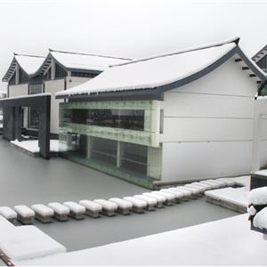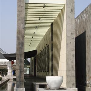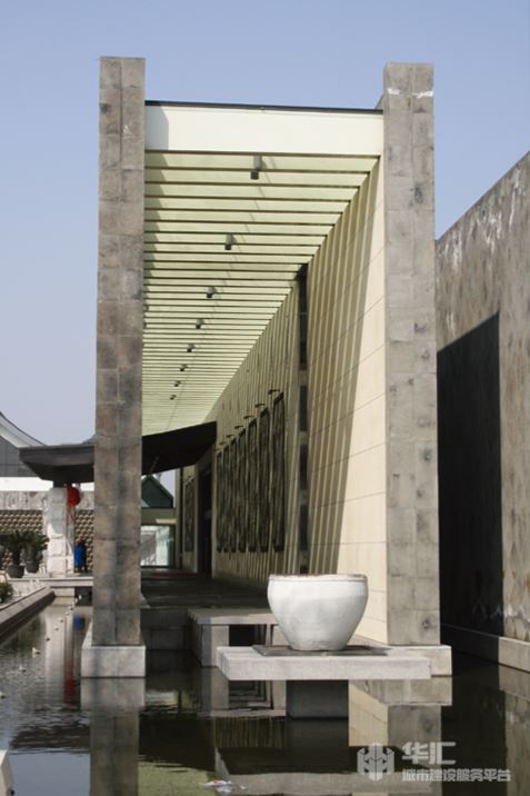 該項目位于浙江省紹興市,占地面積3.5萬平方米,總建筑面積2.4萬平方米。由過廳、主展廳、演示廳等部分組成,設(shè)有入口廣場、酒街、游廊等。建筑以清水磚墻砌筑,具有厚重、樸實、素雅、精美的建筑風(fēng)格,將古老與現(xiàn)代、笨拙與精巧、粗實與通透融合在一起,充分體現(xiàn)水文化、酒文化、城市文化的和諧結(jié)合。建筑設(shè)一層地下室,主體采用鋼筋混凝土框架結(jié)構(gòu)。