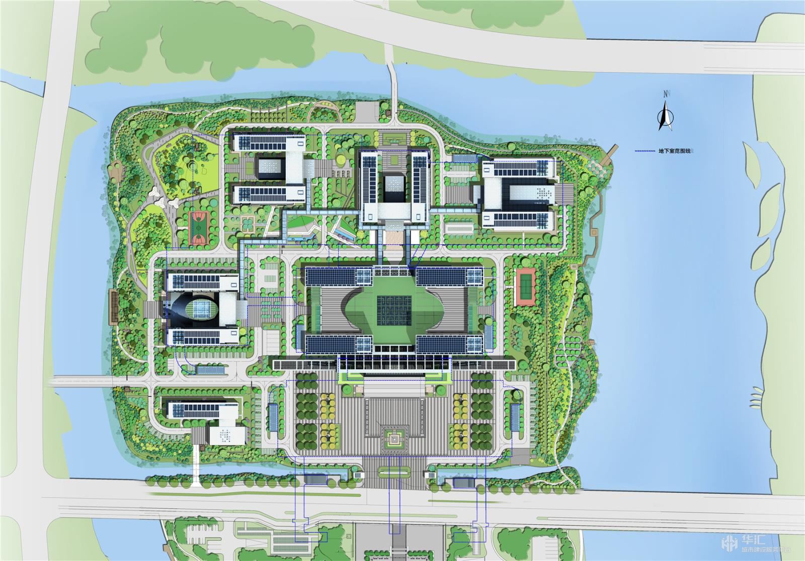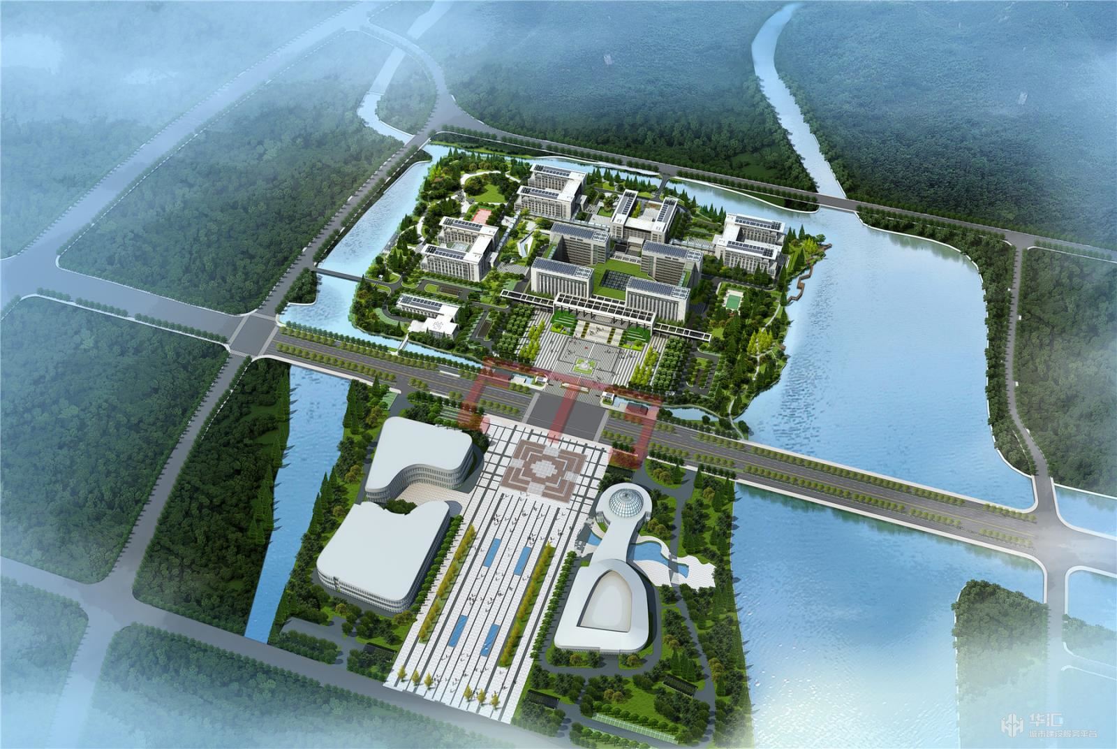 3、“和”的體現(xiàn):空間布局依托山水之勢(shì),巧于因借,從“核”心的地理位置到“和”心的氣場(chǎng)空間,使建筑與景觀和諧共生,城市空間序軸渾然一體,融合于大環(huán)境中。