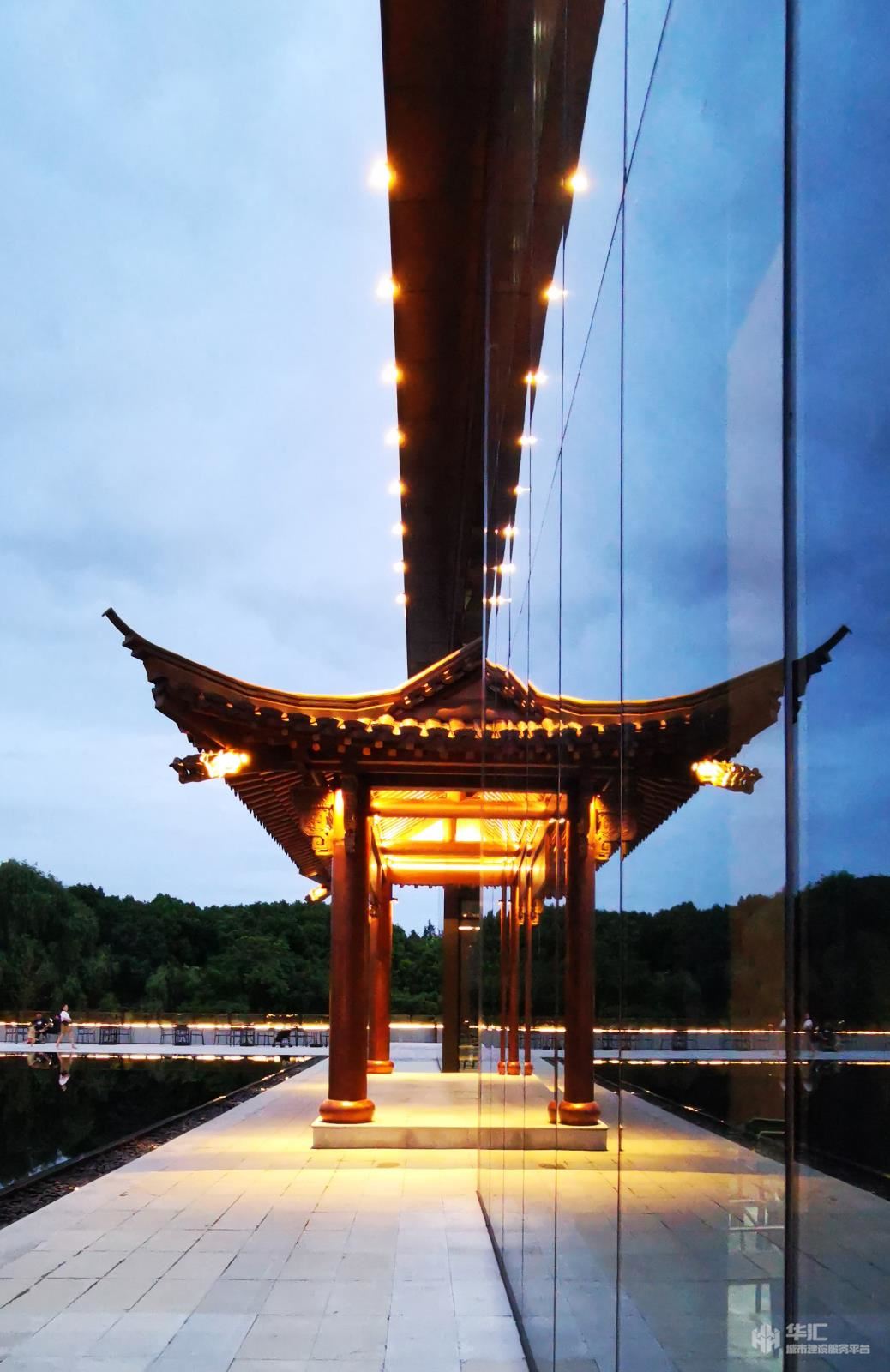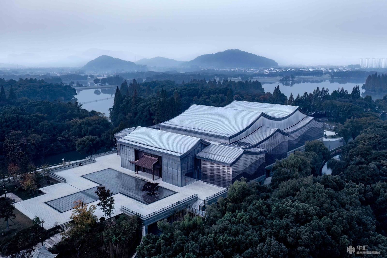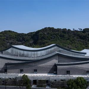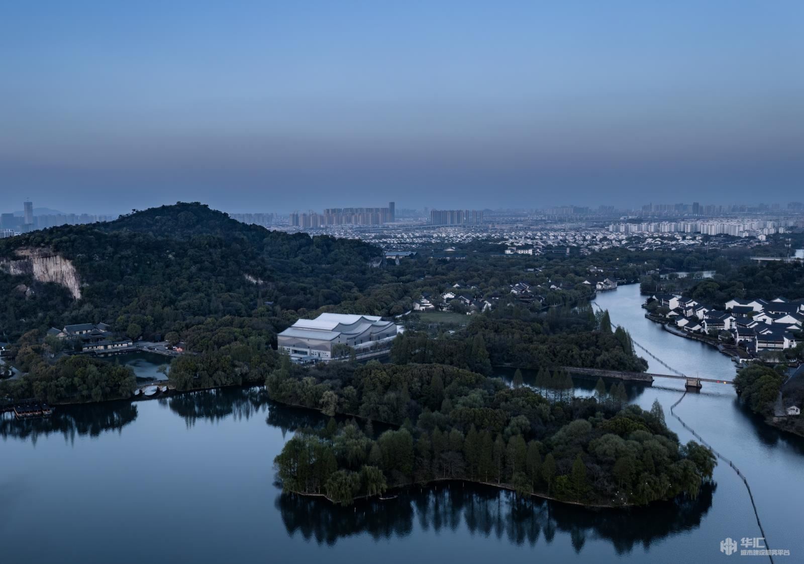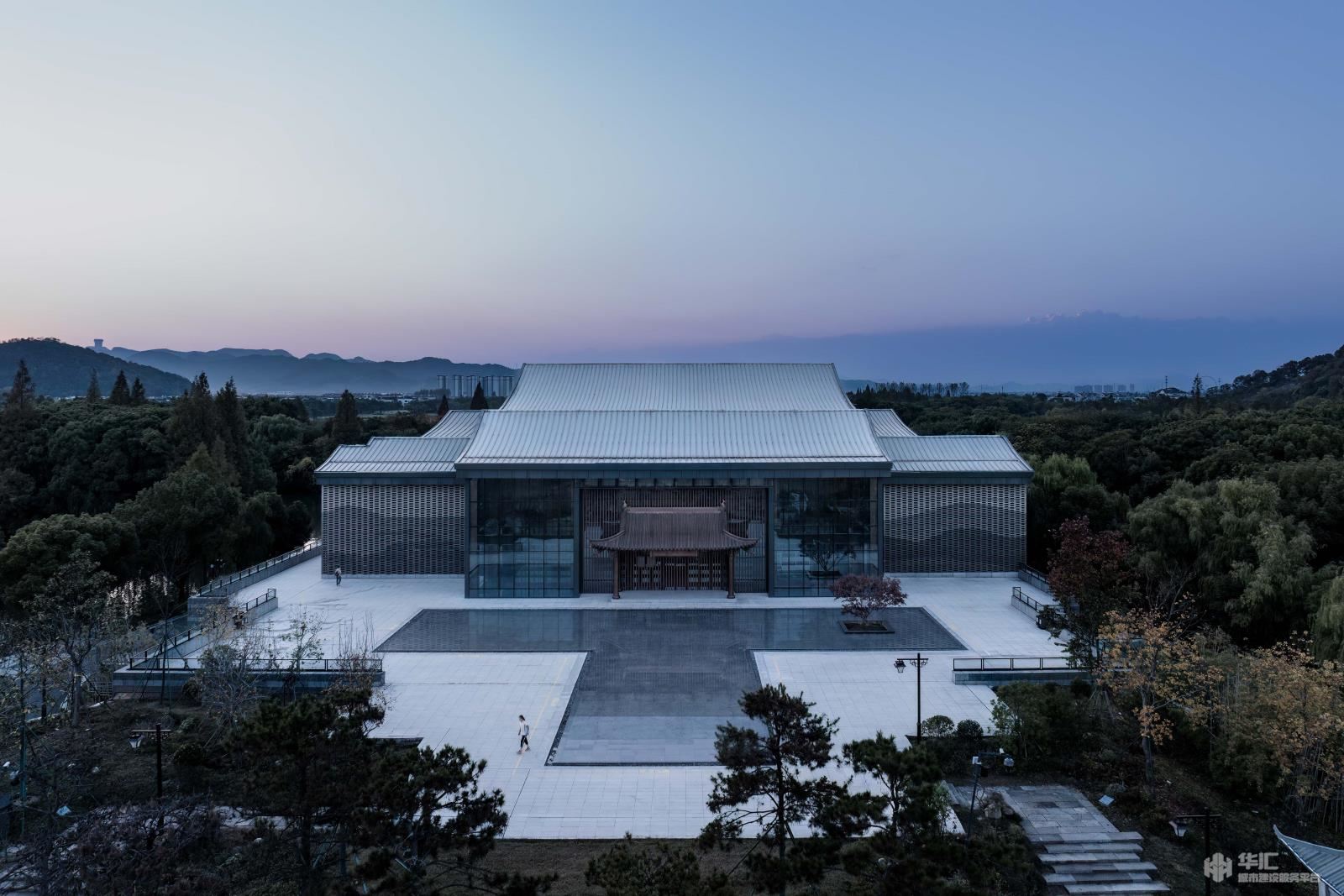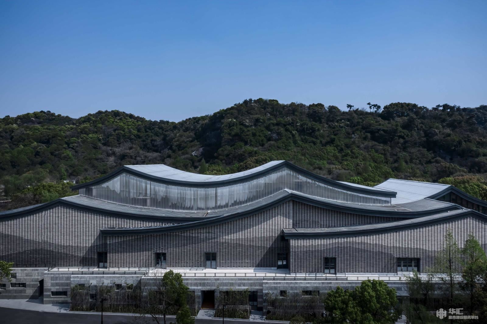 規(guī)劃設(shè)計(jì)的初始意圖在于合理的、清晰的安排整個(gè)空間的功能需求,盡可能在比較小的用地空間內(nèi)滿足演藝劇場的設(shè)計(jì)功能,并創(chuàng)造出寬廣、實(shí)用的場外景觀空間。建筑力求物明快簡潔,將傳統(tǒng)元素與現(xiàn)代元素進(jìn)行配搭,從傳統(tǒng)的坡屋頂、青磚白墻到到高低起伏的流線型屋面、石材、陶磚的建筑外墻主元素,從在建筑外觀撐著小船去看社戲到穿過戲臺走進(jìn)大劇場內(nèi),“坐在巨人的懷抱里,觀看人間的悲喜愛恨”。