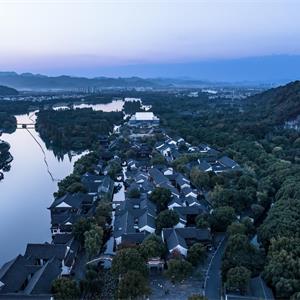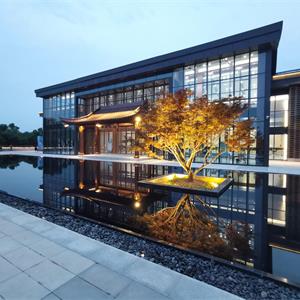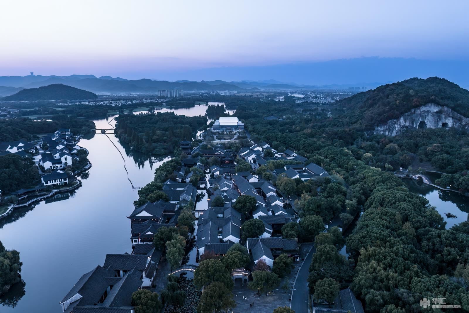 《魯鎮(zhèn)·社戲》演藝中心是大型影畫劇定制劇場,項(xiàng)目位于國家級4A級紹興柯巖風(fēng)景區(qū),通過視覺延展、形體差異、交錯(cuò)轉(zhuǎn)折、高差臺地、化整為零處理,大大削弱了劇場建筑的體量感,從而緩和與魯鎮(zhèn)原有小尺度環(huán)境的沖突,并營造和呈現(xiàn)了“現(xiàn)代山水意向”,使建筑嵌入鑒湖,融于古鎮(zhèn)。主入口傳統(tǒng)戲臺是建筑與劇情矛盾沖突的營造。