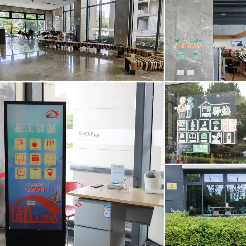 實施戶外勞動者暖心工程、建設戶外勞動者服務點,今年列入了浙江省政府民生實事工程,也列入了紹興市政府十項民生實事任務清單。 華匯集團秉持“承擔責任光榮”的企業(yè)精神,積極響應號召,華匯工會驛站3月份在華匯科研設計中心一樓大廳正式掛牌,成為越城區(qū)首批15家規(guī)范型戶外勞動者服務站點之一。驛站配置了冰箱、手機充電、熱水、微波爐、醫(yī)藥箱、雨傘、書報等服務設備,通過一樓大堂的集成利用,向戶外勞動者開放,為包括快遞小哥在內(nèi)的新業(yè)態(tài)工作者提供了多功能、綜合性的溫馨休憩港灣。