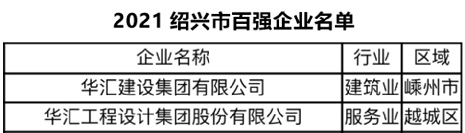 近日,紹興市企業(yè)家協(xié)會發(fā)布了“2021紹興市百強(qiáng)企業(yè)名單”。名單在各企業(yè)自行申報的基礎(chǔ)上,以2020年度營業(yè)收入為依據(jù)進(jìn)行排序,已成為紹興市經(jīng)濟(jì)發(fā)展的晴雨表。此次,設(shè)計集團(tuán)和建設(shè)集團(tuán)再度聯(lián)手上榜,其中,華匯設(shè)計集團(tuán)作為唯一一家文化創(chuàng)意企業(yè)位列其中。